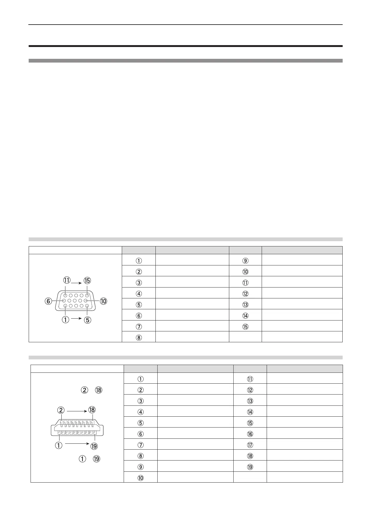 <HDMI 1 IN> terminal / <HDMI 2 IN> terminal pin assignments and signal names