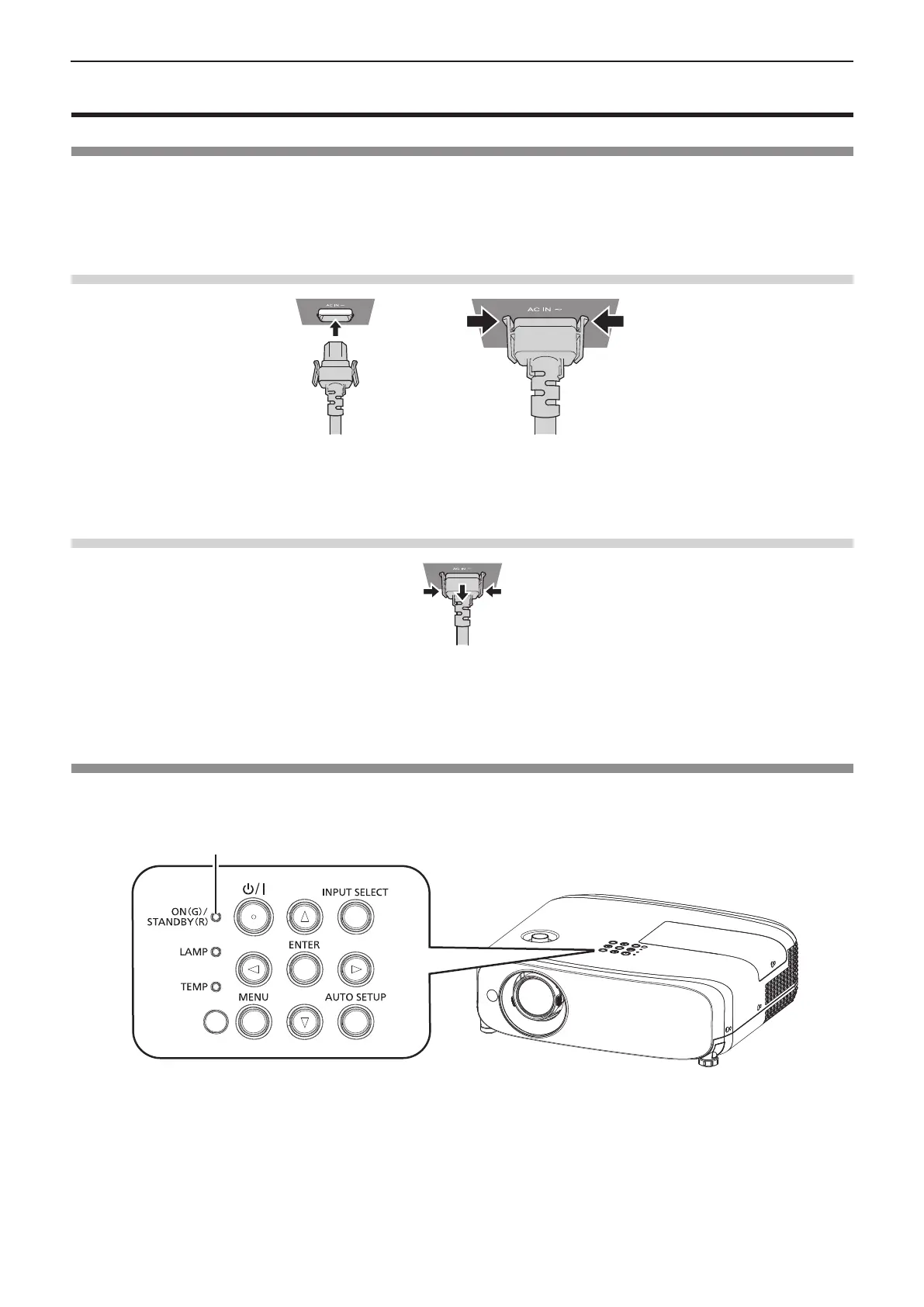 Make sure that the supplied power cord is securely xed to the projector body to prevent it from being removed