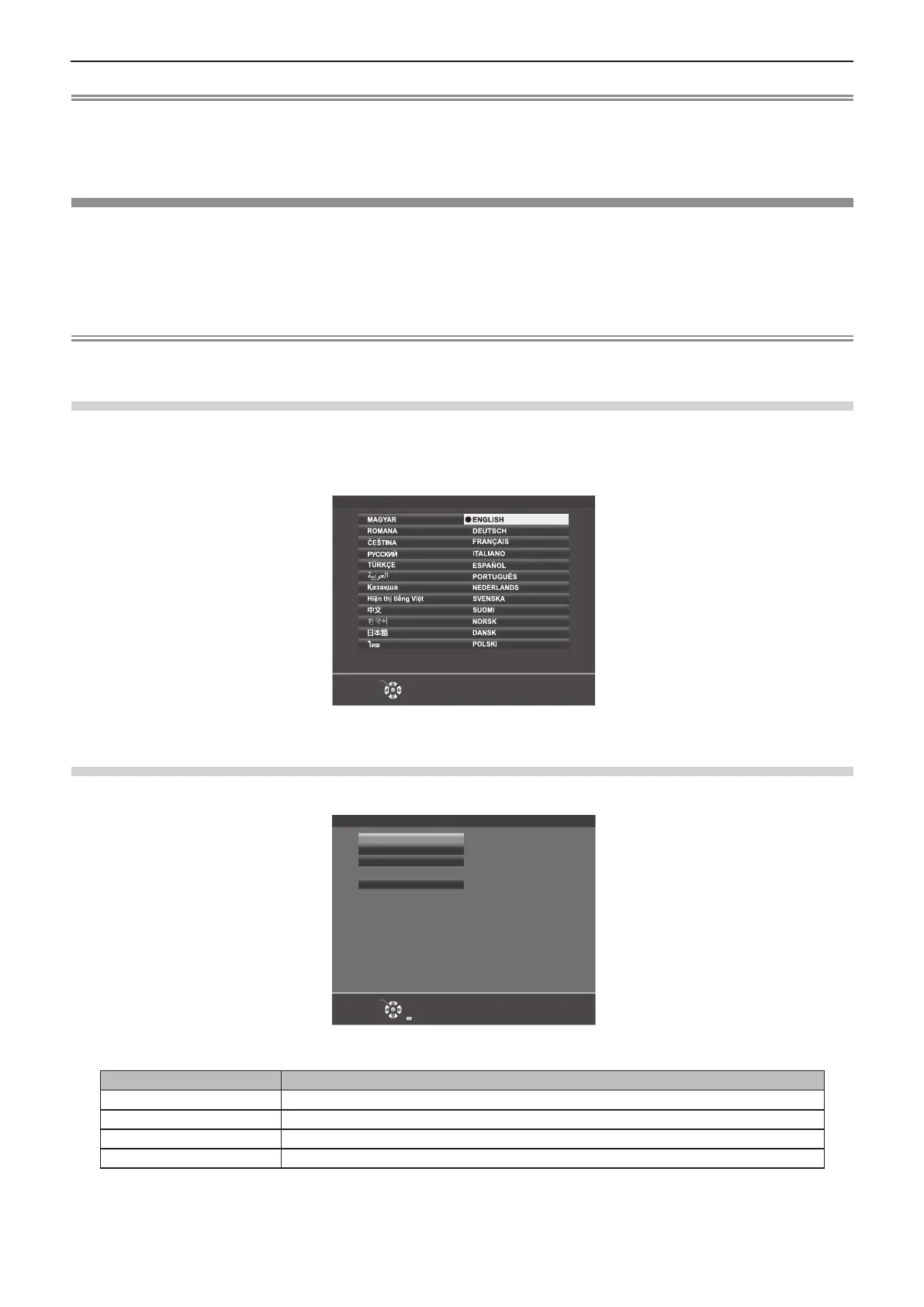 After the initial setting, you can change the display language from the [LANGUAGE] menu.