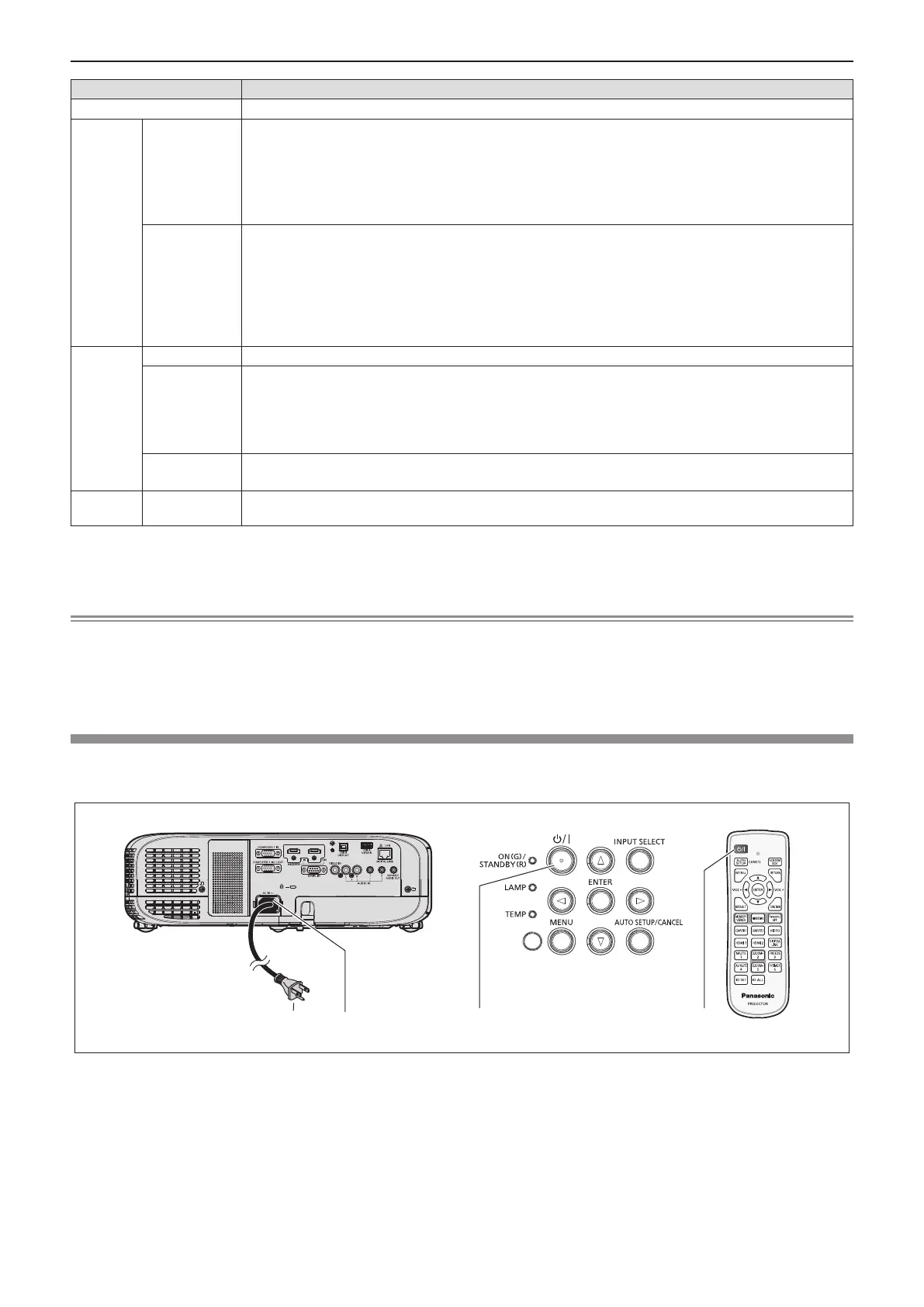 f The power indicator <ON(G)/STANDBY(R)> lights in green and the image is soon projected on the screen.