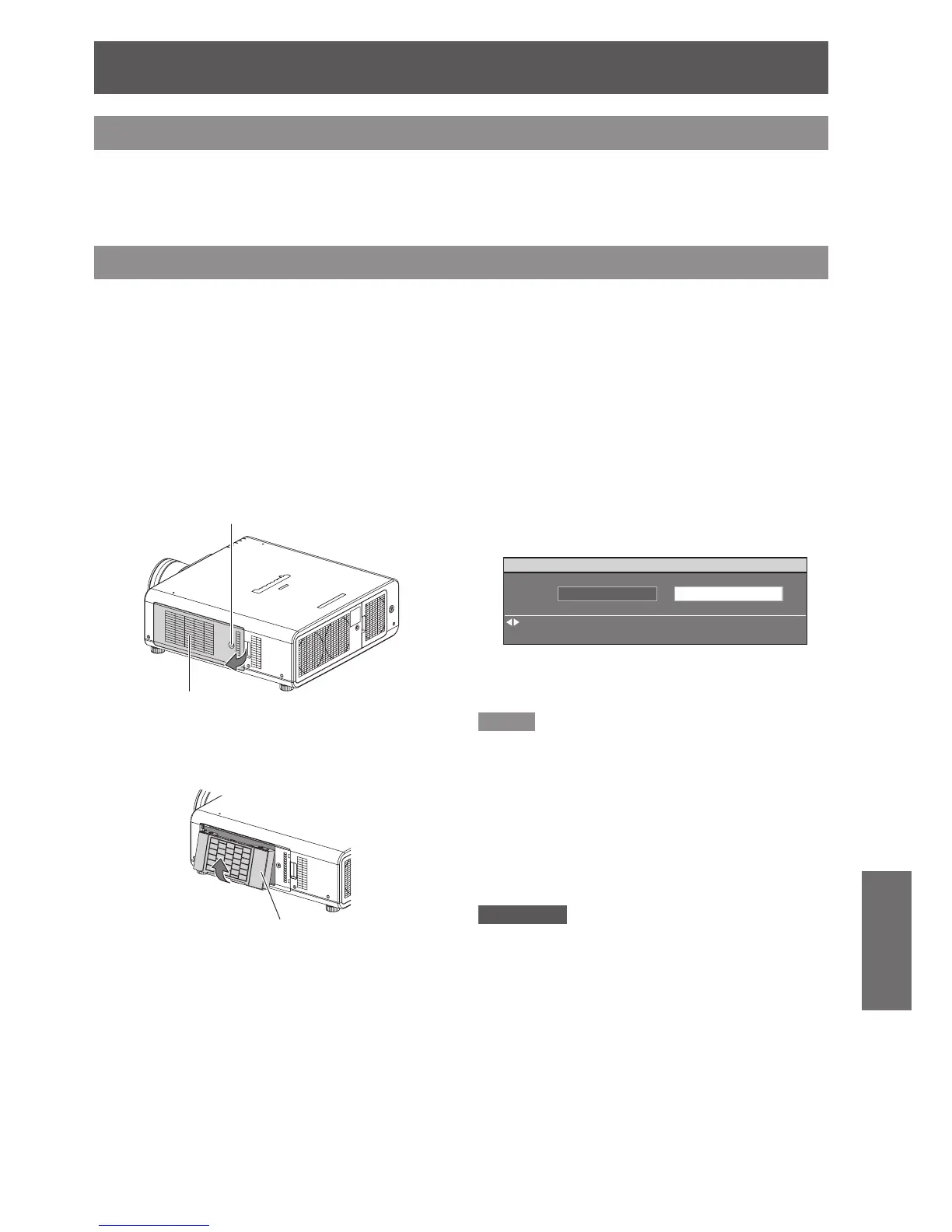 You can check the remaining amount of the ACF unit in [REMAINING FILTER] of [STATUS] in PROJECTOR