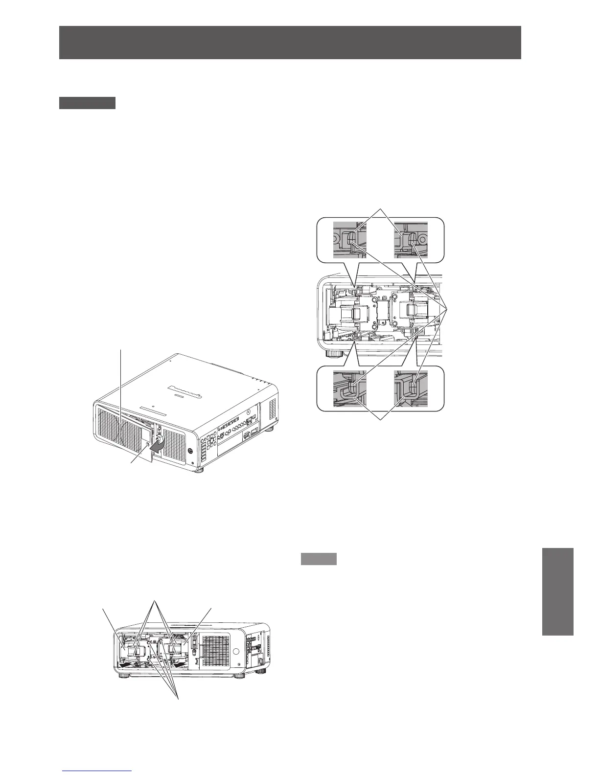 The lamp unit and the lamp unit cover must be attached correctly and securely. Failure to do so, the projector will not be