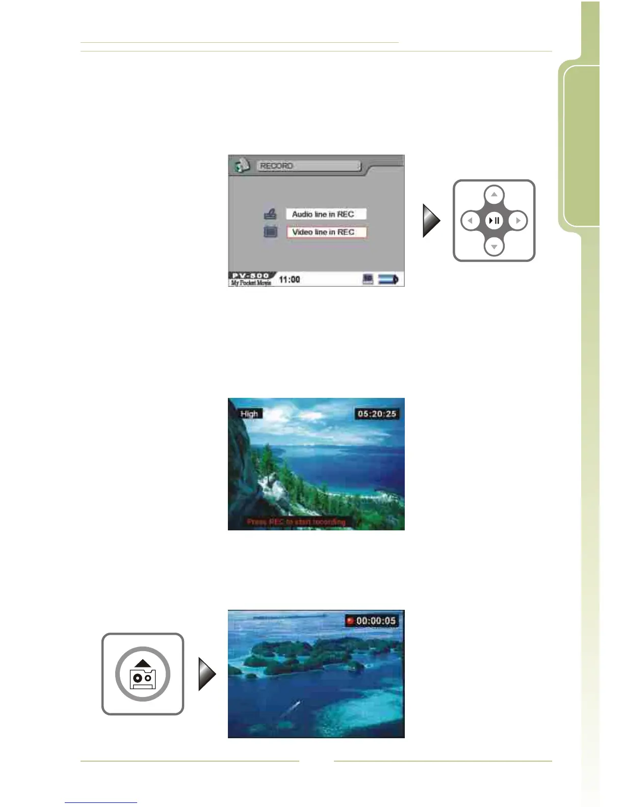 AV IN jack on PV-500, it will record the video into a MPEG4 file whose