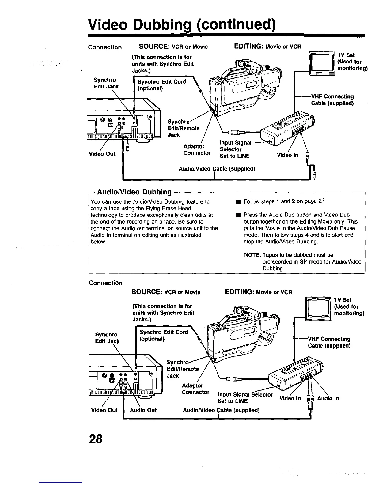 • Press the Audio Dub button and Video Dub