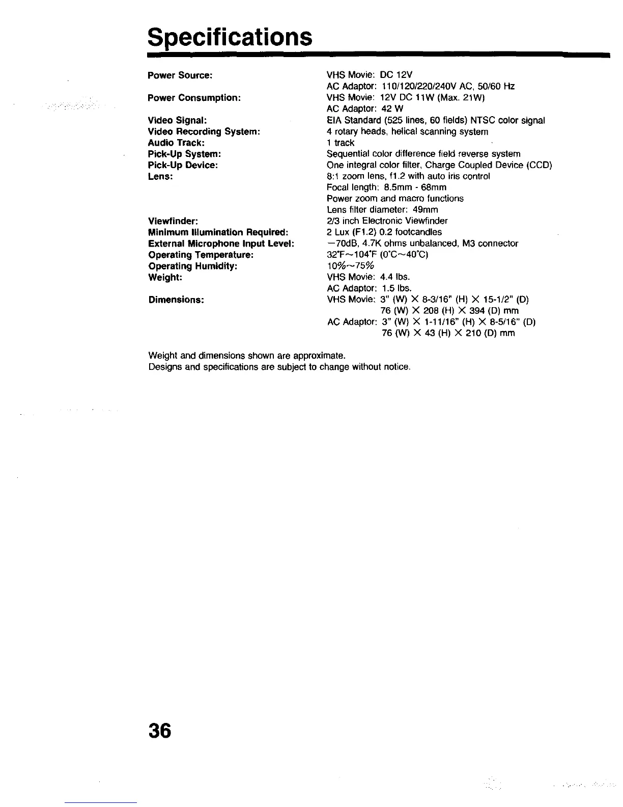 AC Adaptor: 1.5 Ibs.