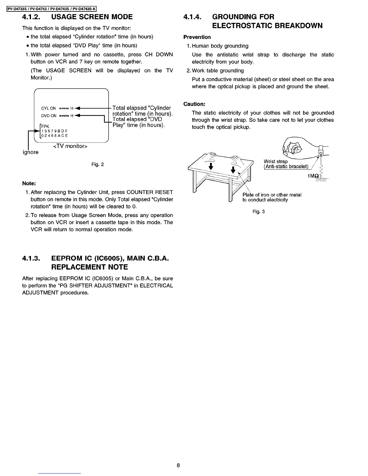 Panasonic PV-D4733S - 4.1.2. USAGE SCREEN MODE; 4.1.3. EEPROM IC (IC6005), MAIN C.B.A. REPLACEMENT NOTE; 4.1.4. GROUNDING FOR ELECTROSTATIC BREAKDOWN