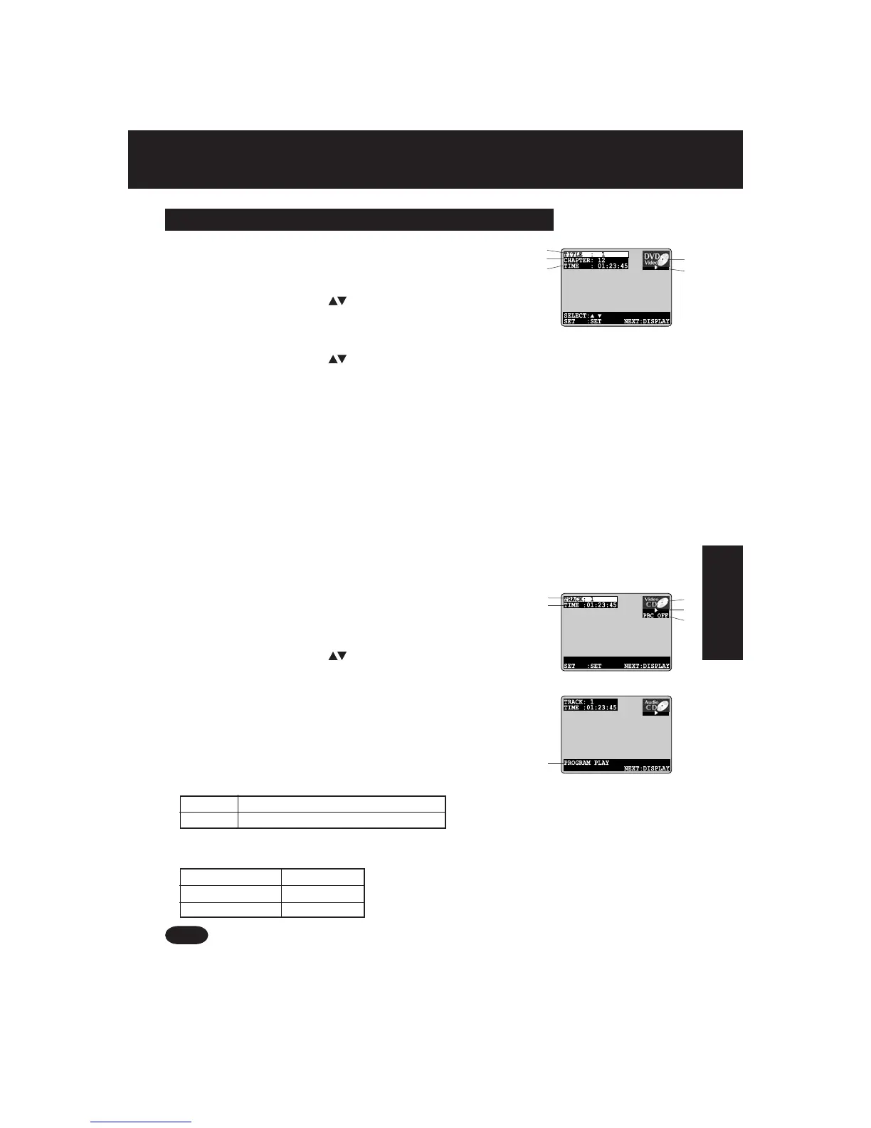 ■ Disc information screen (for Video CD/ CD)