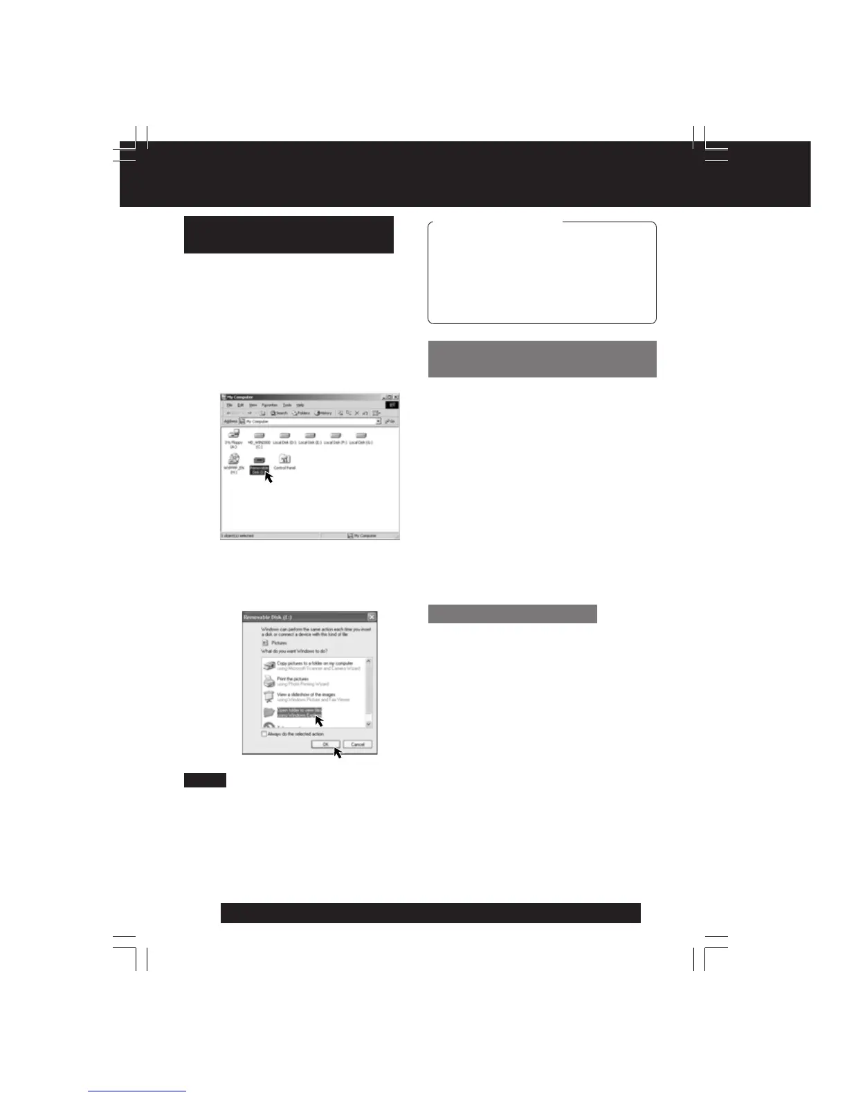 • The “Removable Disk” screen is
