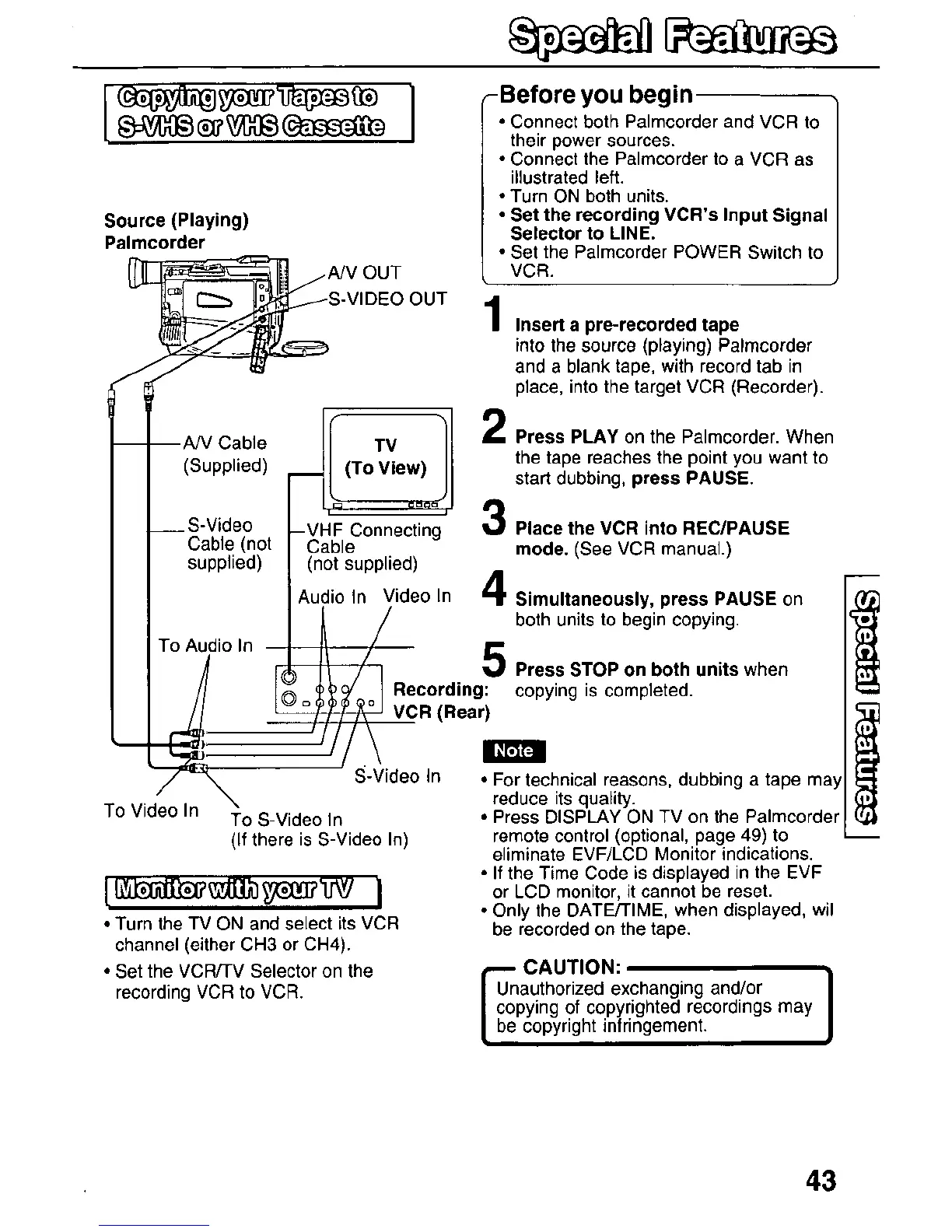 Panasonic PV-DV51 - Copying your Tapes to S-VHS or VHS Cassette