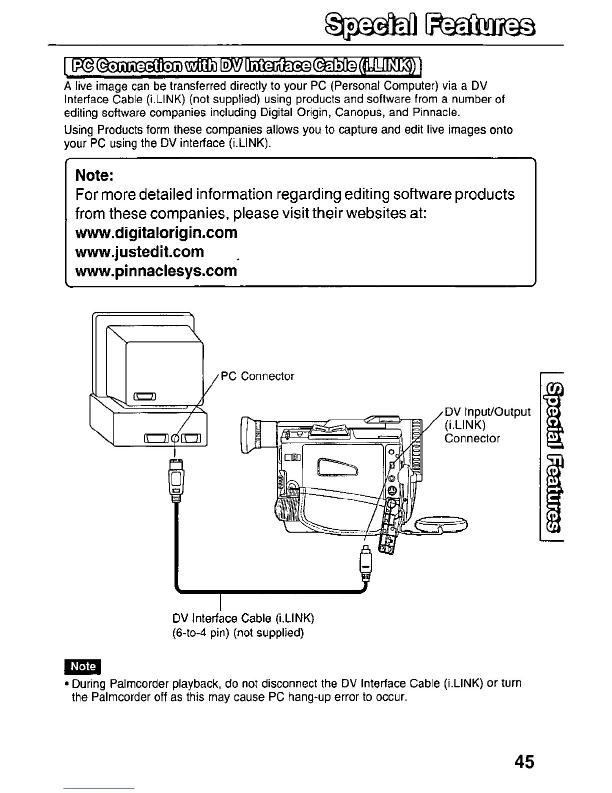 Panasonic PV-DV51 - Special Features; PC Connection with DV Interface Cable (i.LINK)