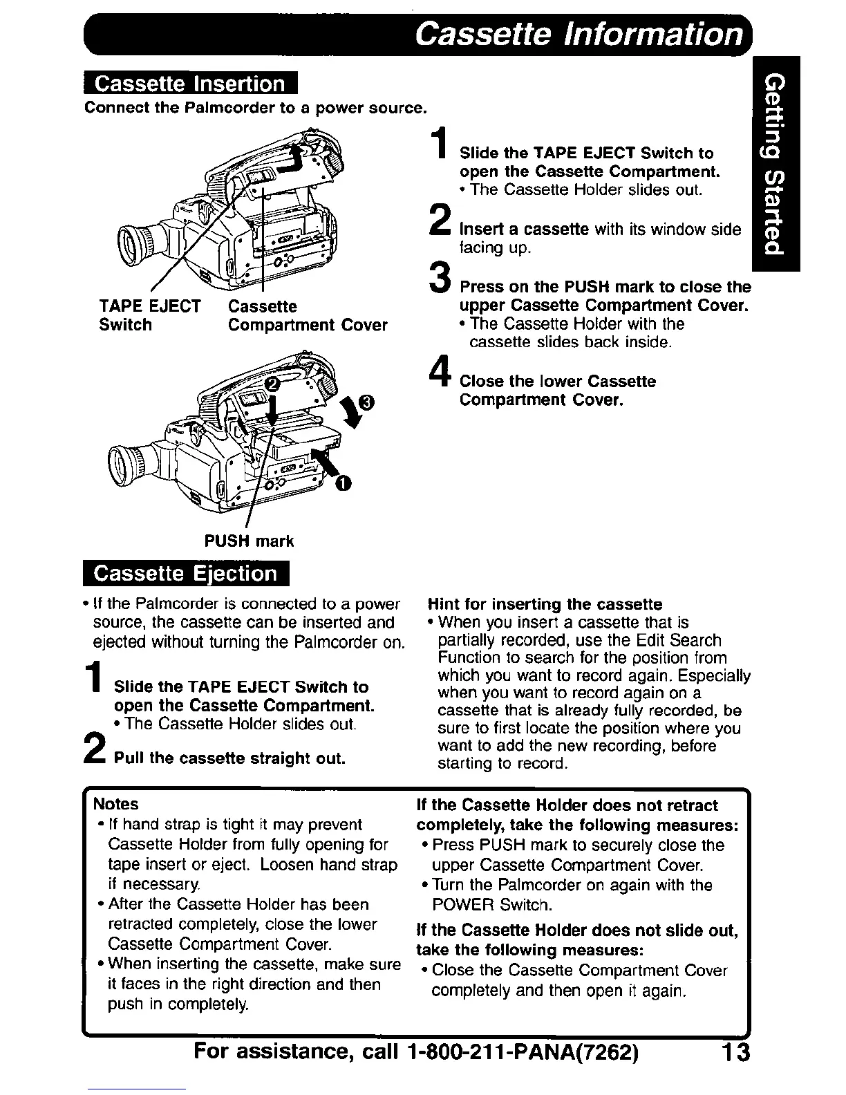 Panasonic PV-DV900 - Cassette Handling and Information; Cassette Insertion and Ejection