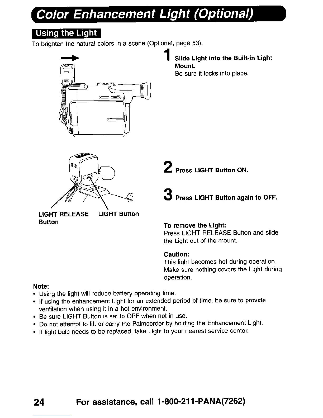 Panasonic PV-DV900 - Special Features: Image Enhancement and Recording; Color Enhancement Light