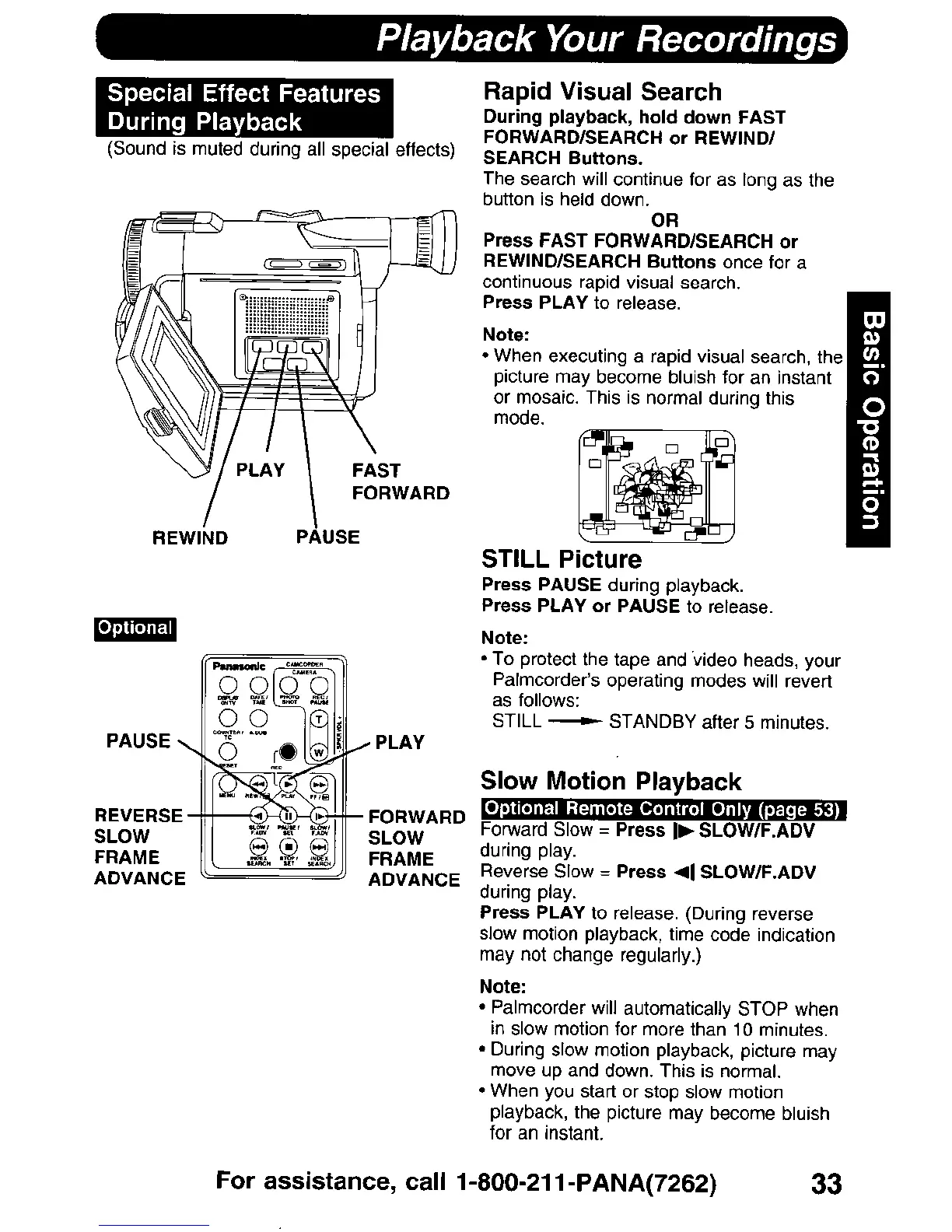 Panasonic PV-DV900 - Special Effect Features During Playback; Rapid Visual Search; STILL Picture; Slow Motion Playback