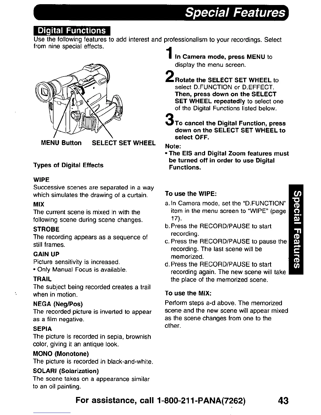 Panasonic PV-DV900 - Digital Functions; Types of Digital Effects; To Use the MIX; To Use the WIPE