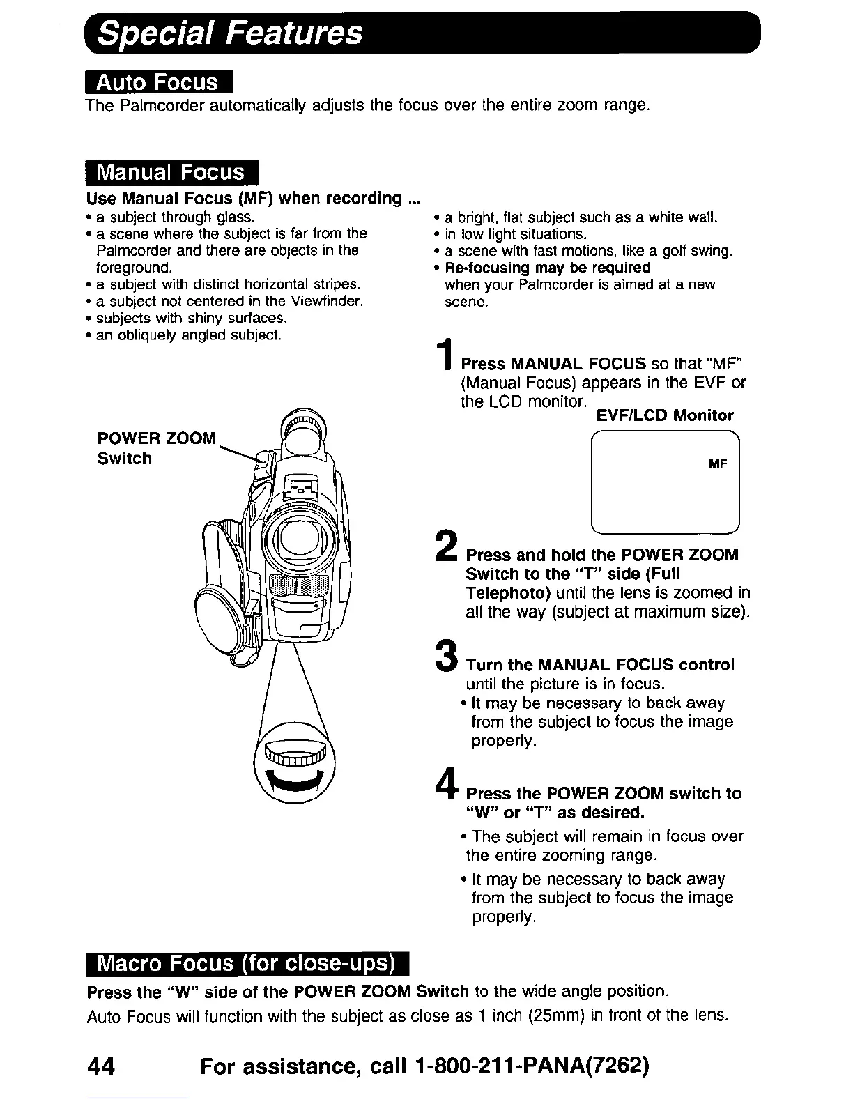 Panasonic PV-DV900 - Focus, Backlight, and Shutter