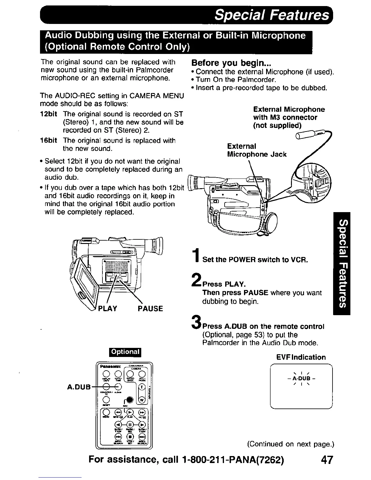 Panasonic PV-DV900 - Audio Dubbing and Tape Copying