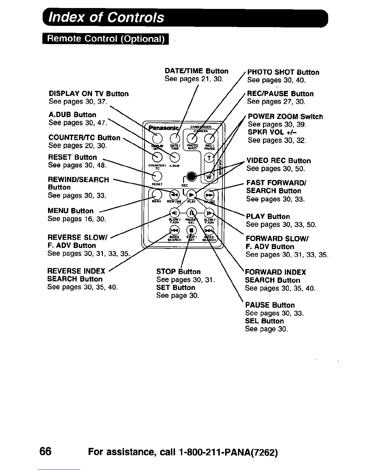 Panasonic PV-DV900 - Optional Remote Control Functions