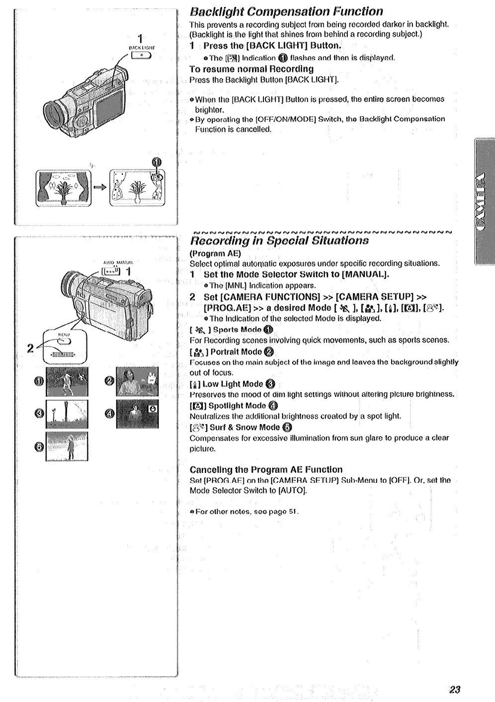 0 Uy operating the [O~~/ON/~O~~] Switch, the backlight ~or~p~ns~tion