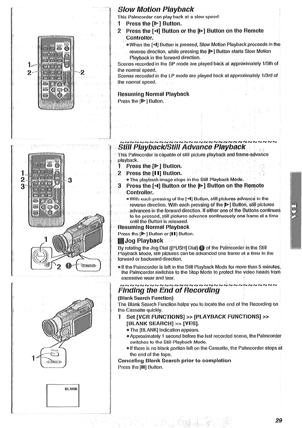 .S If thsro is no blank portion loft on the Cassolte, the Palmcorder stops at