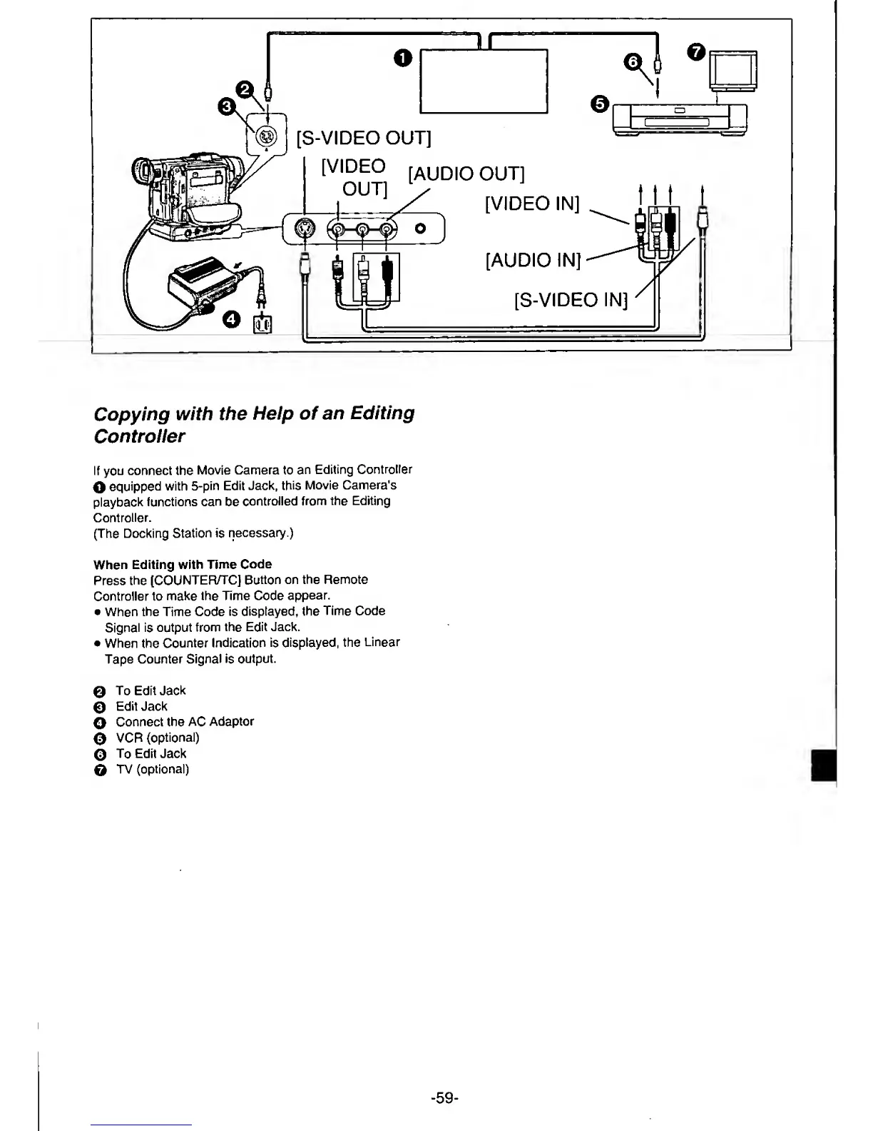 Panasonic PV-DV950 - Editing Controller Connection; Using Editing Controller with Time Code