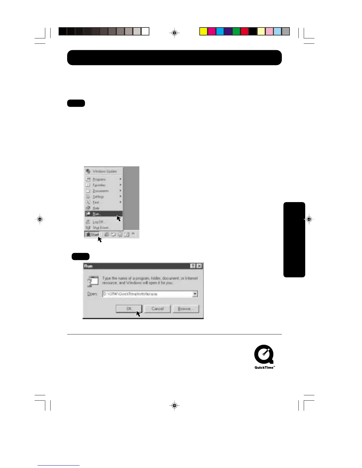 4Type in “D:\QTW\QuickTimeInstaller.exe” and click “OK”.