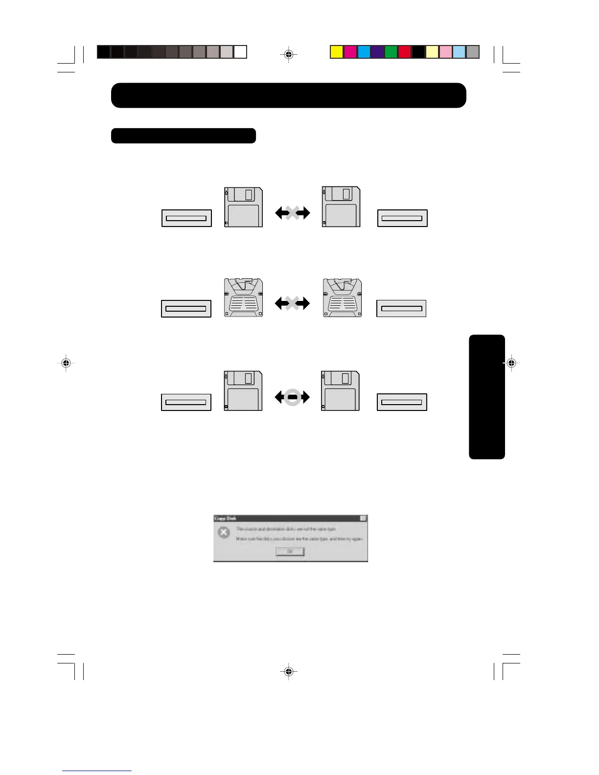 • Disk copy cannot be performed with SuperDisk Diskette.