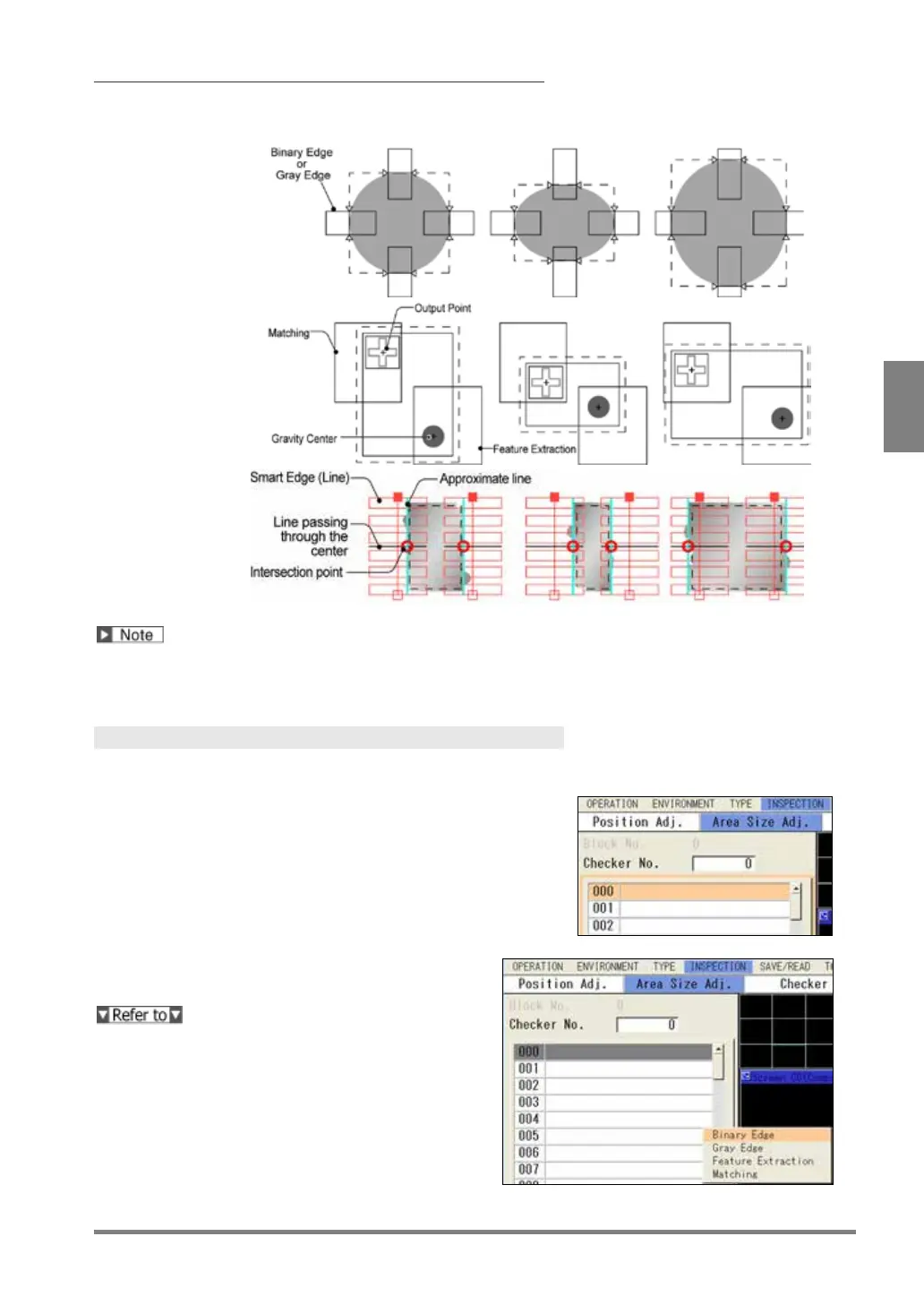 Binary Edge, Gray Edge, Feature Extraction, Smart Matching and Smart Edge (Line) can be set to detect an