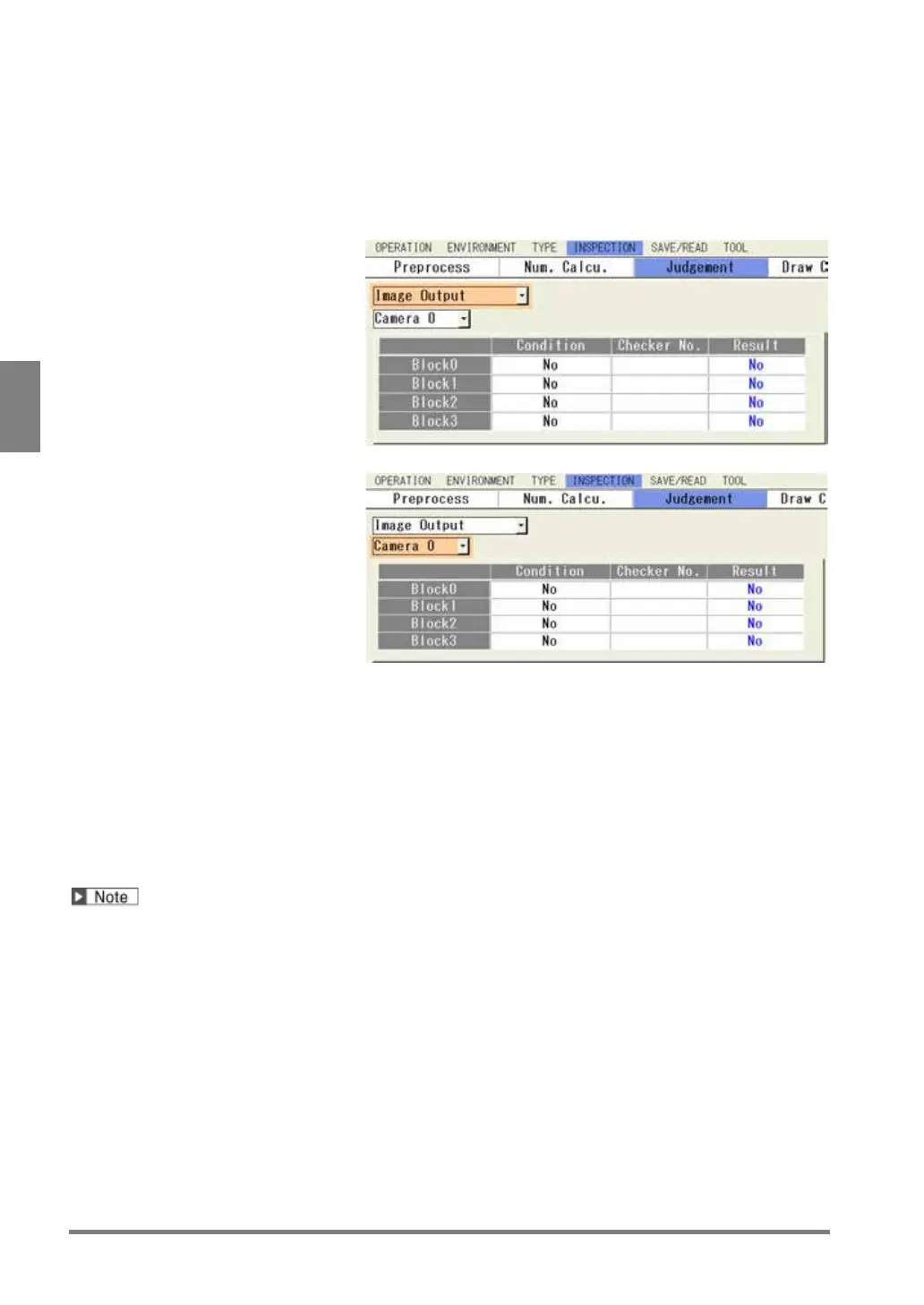 inspection image output have been set for the block No. 0 only, the inspection image is not output as the