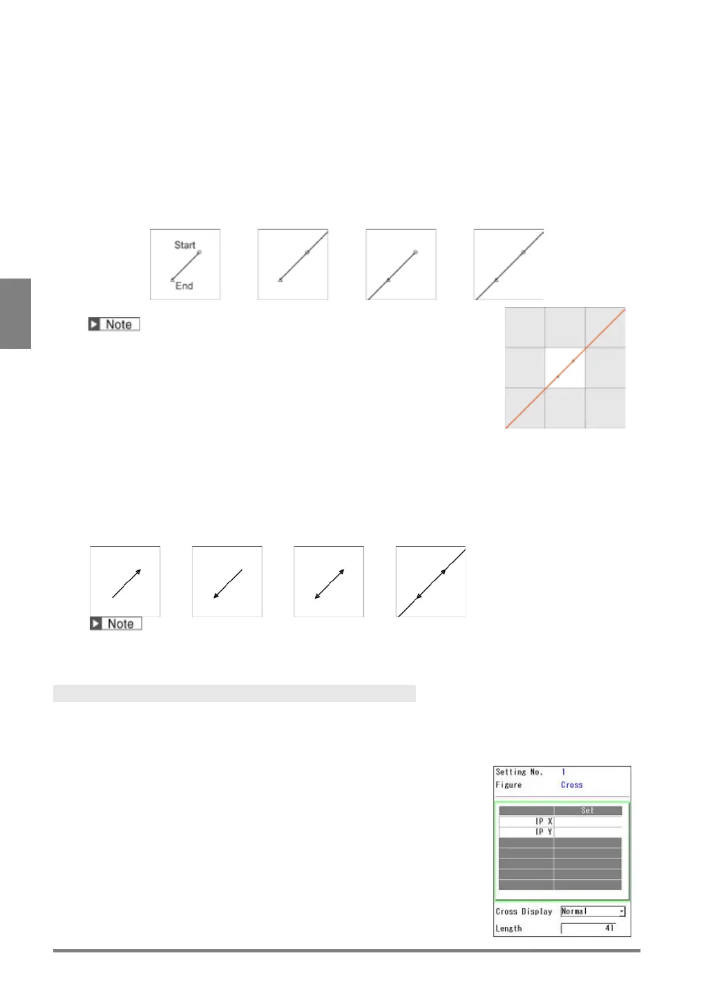 When "Line Display" is set to "Half line 0", "Half line 1" or "Wall-to-wall", the arrowheads are displayed at the