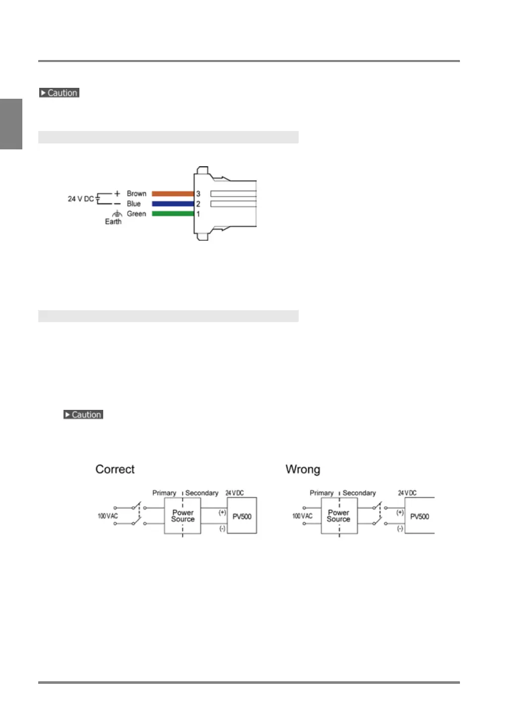 • Ensure to use the separate power supply for the PV500 from the power supply for power devices.