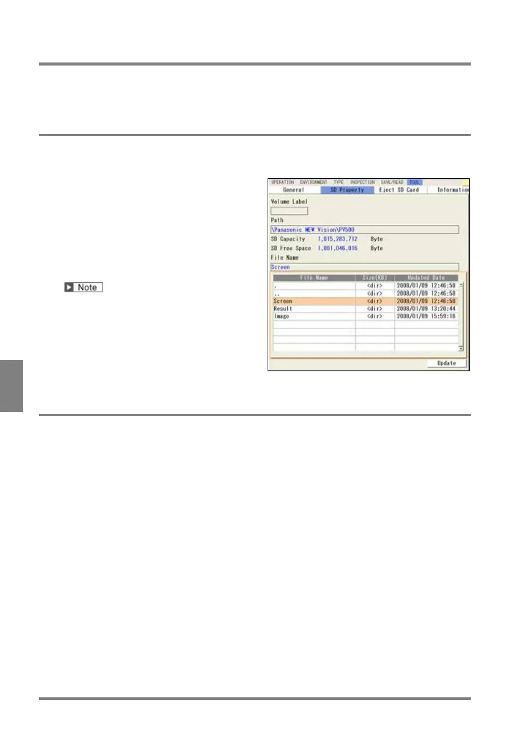 “SD Property” shows information of a SD memory card when attaching it in the slot.
