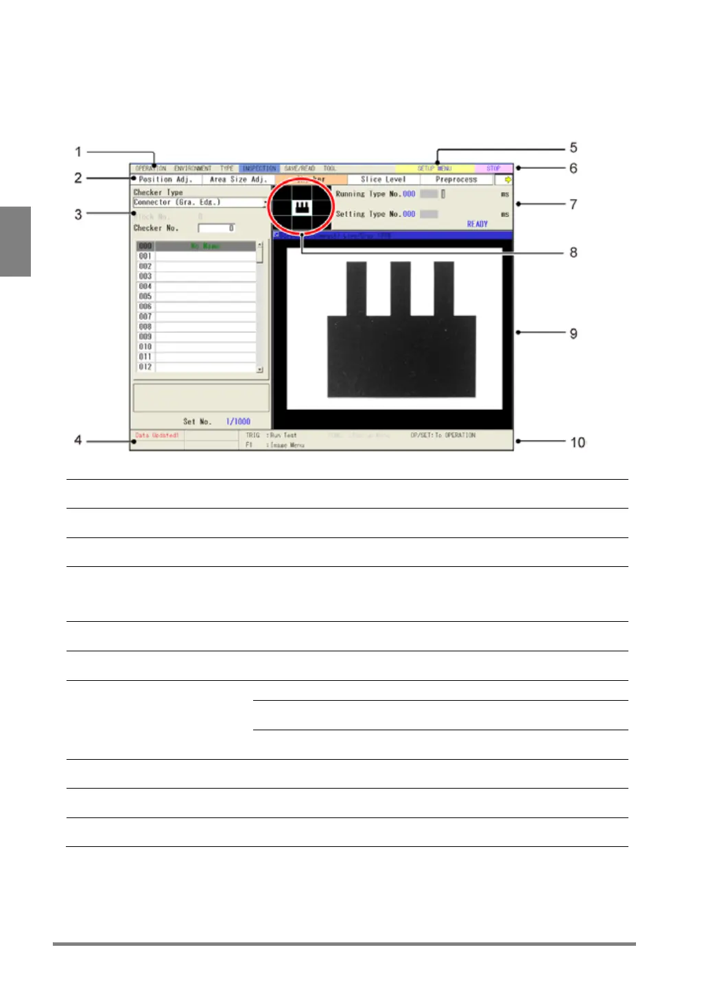 In SETUP menu, the display changes depending on operation. You can choose the colors of each area of