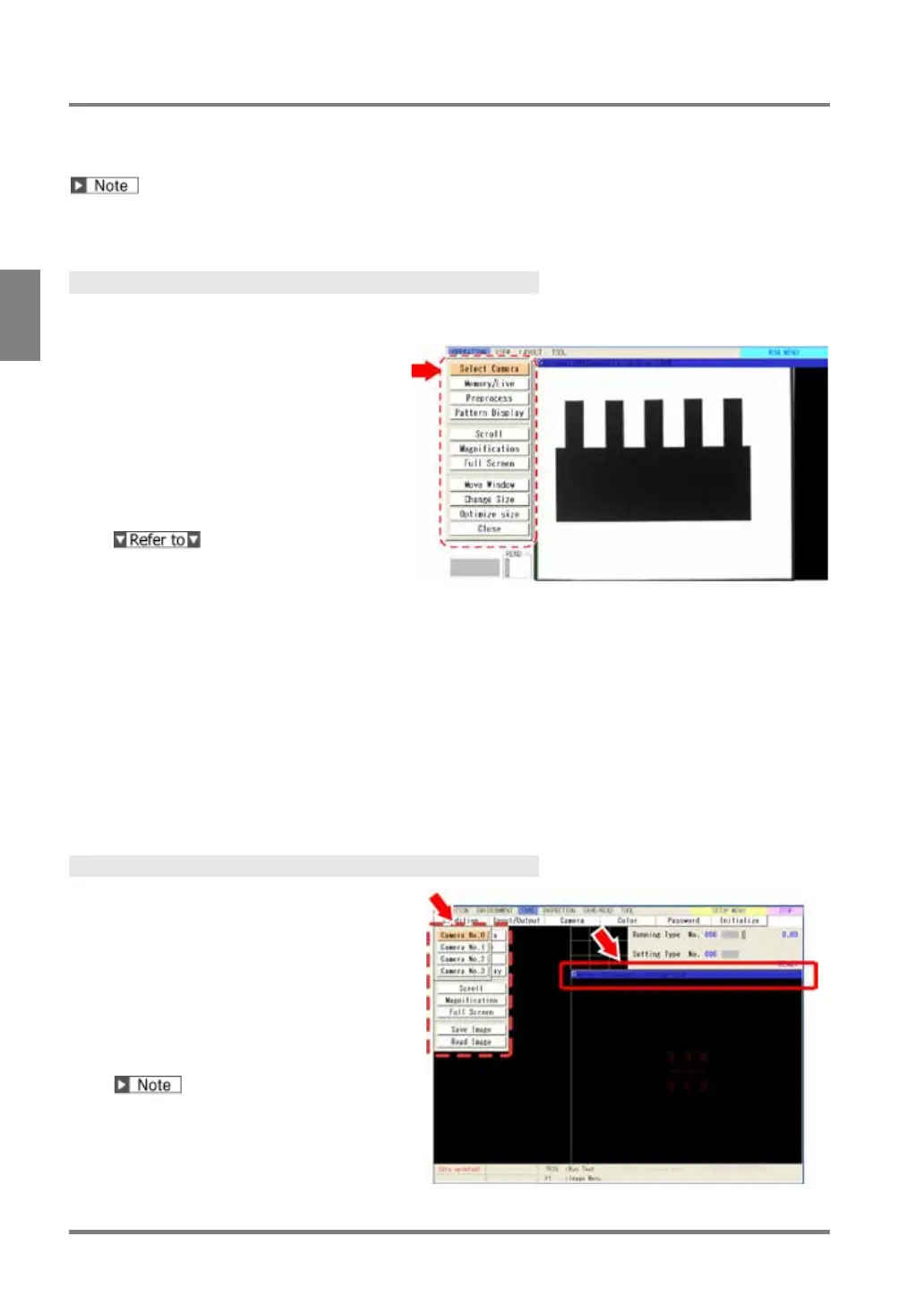 in the screen window bar. As you change the camera number or image type, the display of the bar is updated.