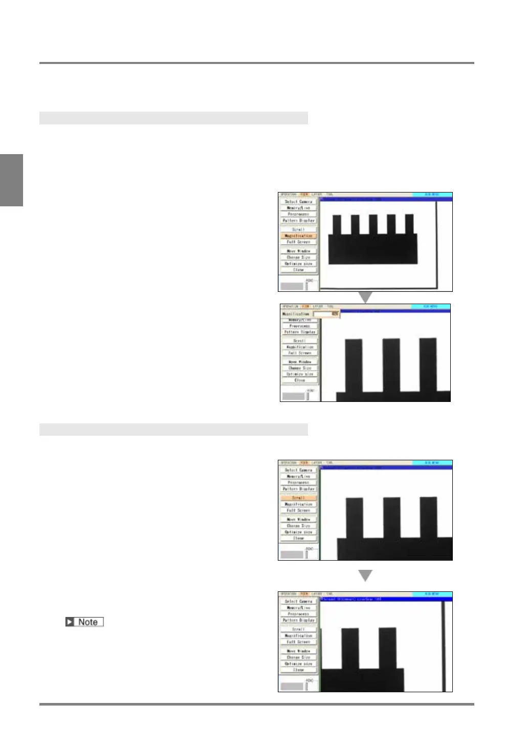Displayed camera image can be zoomed in/out. In RUN menu, you can change the size and position of the