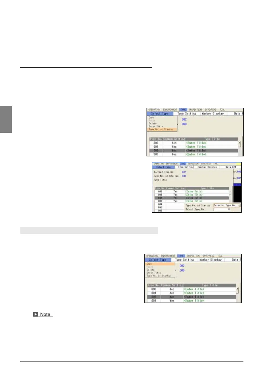 The type to be read at PV500 startup can be specified. This setting can be operated from ENVIRONMENT, and