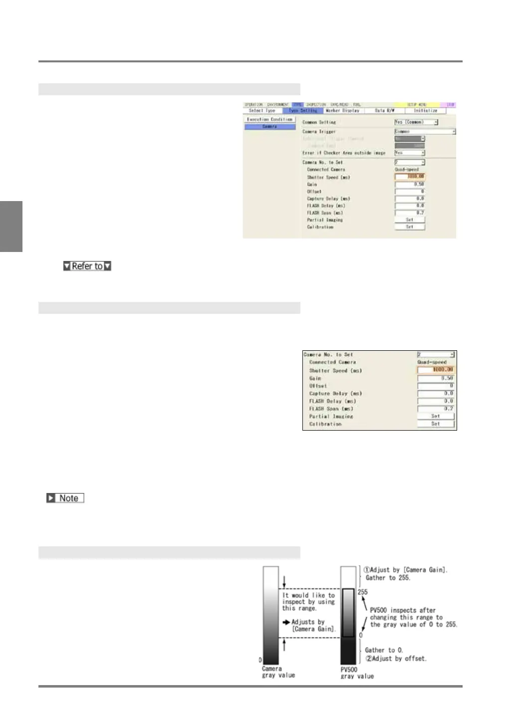 shutter speed (the smaller value), the darker captured image. Adjust lighting illuminance or lens aperture as