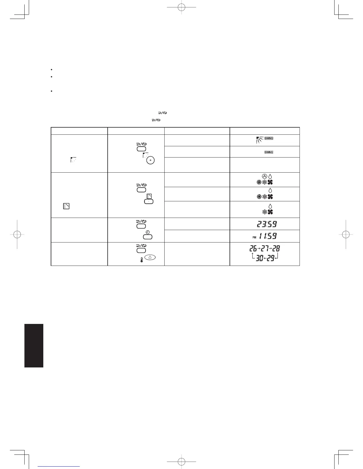 • While holding down the buttons below, every time is pressed the remote control’s display changes.