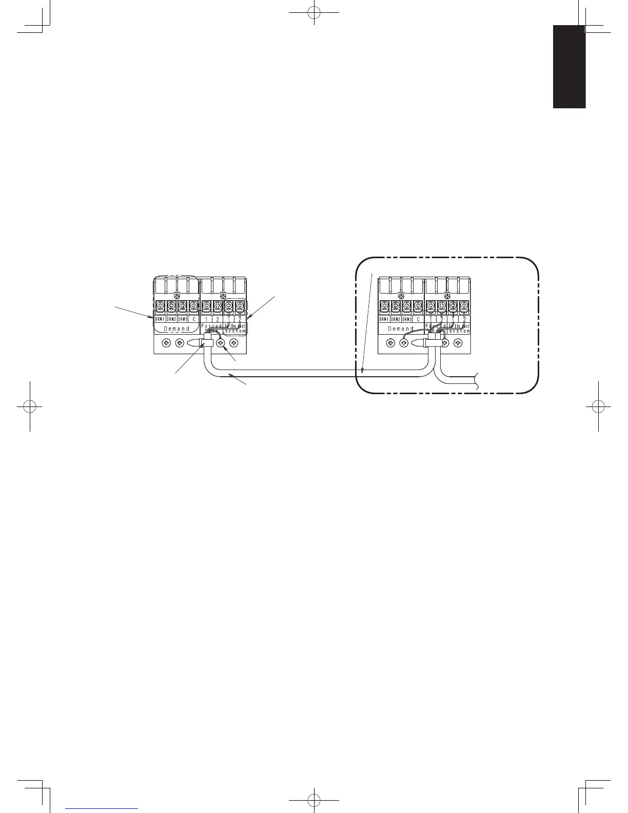 When transferring the Forced Stop input to the next system connect the wiring (2-wire) to the terminal points 1 and 2 at the lower