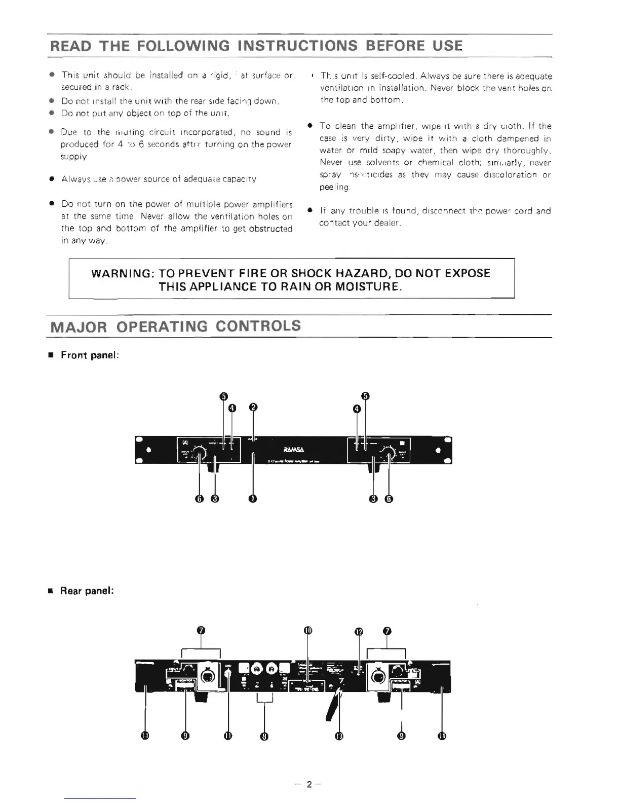 Panasonic RAMSA WP-9055 - SAFETY AND OPERATING PRECAUTIONS; Installation and Ventilation; Critical Hazard Warning