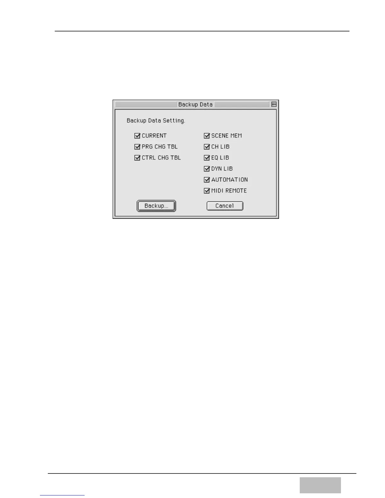 5. Click the [Backup] button after making a selection.