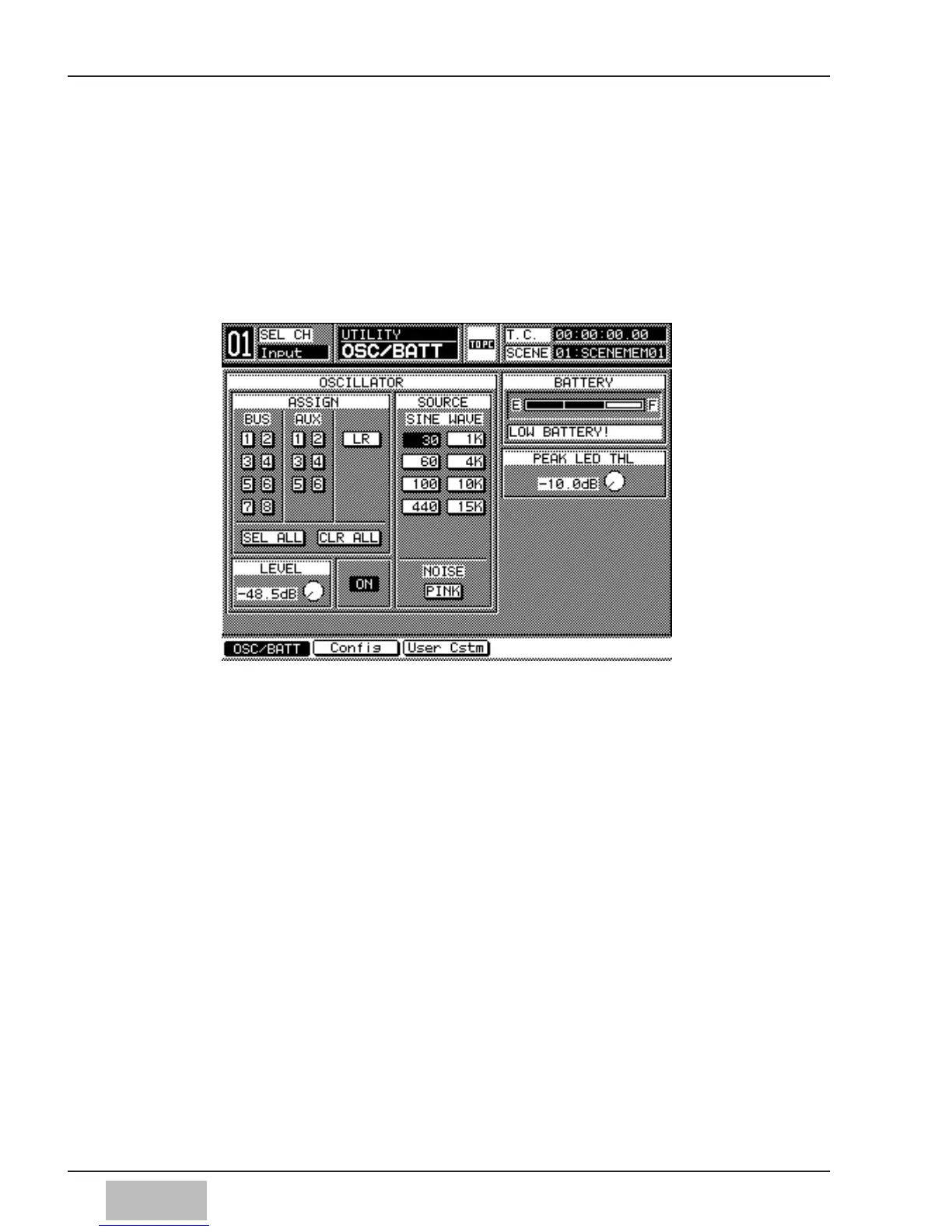 from -10dB through 0.0dB. In the [UTILITY>OSC/BATT] window, there is a