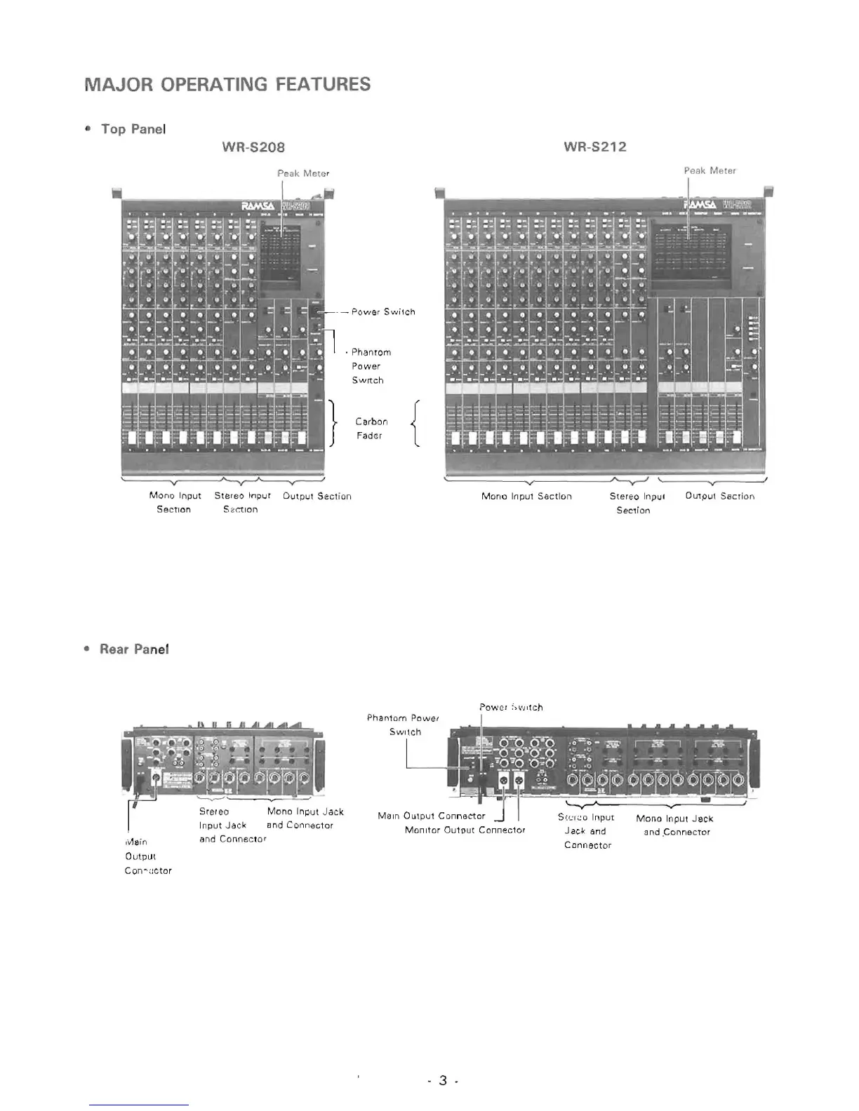 Panasonic RAMSA WR-S208 - Major Operating Features Overview; Top Panel Layout and Controls; Rear Panel Input;Output Jacks