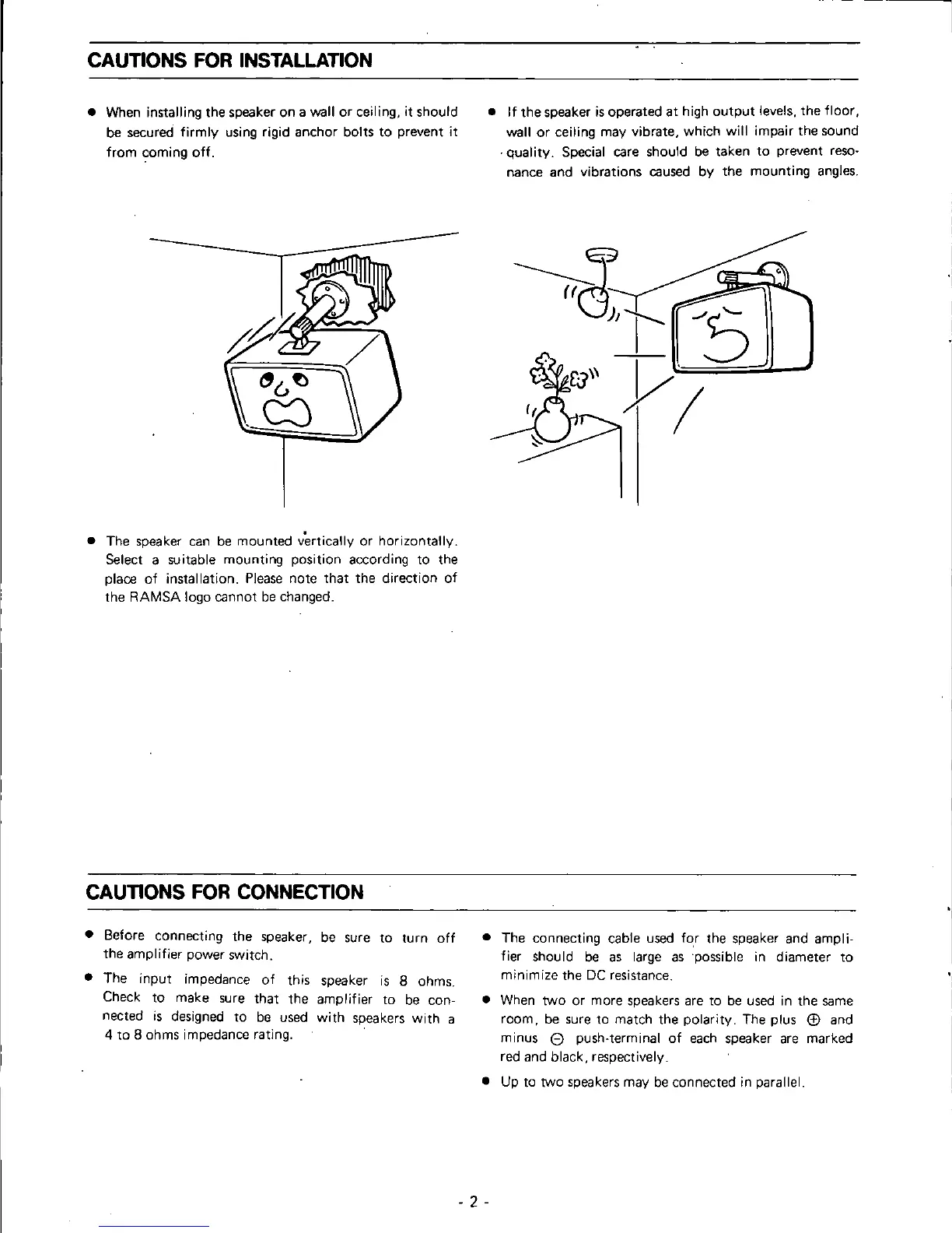 Panasonic Ramsa WS-A80 - CAUTIONS FOR INSTALLATION; CAUTIONS FOR CONNECTION