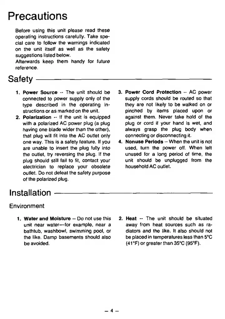 Panasonic RC-6099 - Precautions; Safety Guidelines
