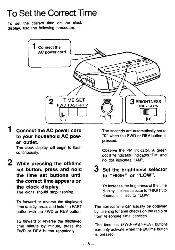 Panasonic RC-6099 - Setting the Correct Time; Power Connection and Time Adjustment