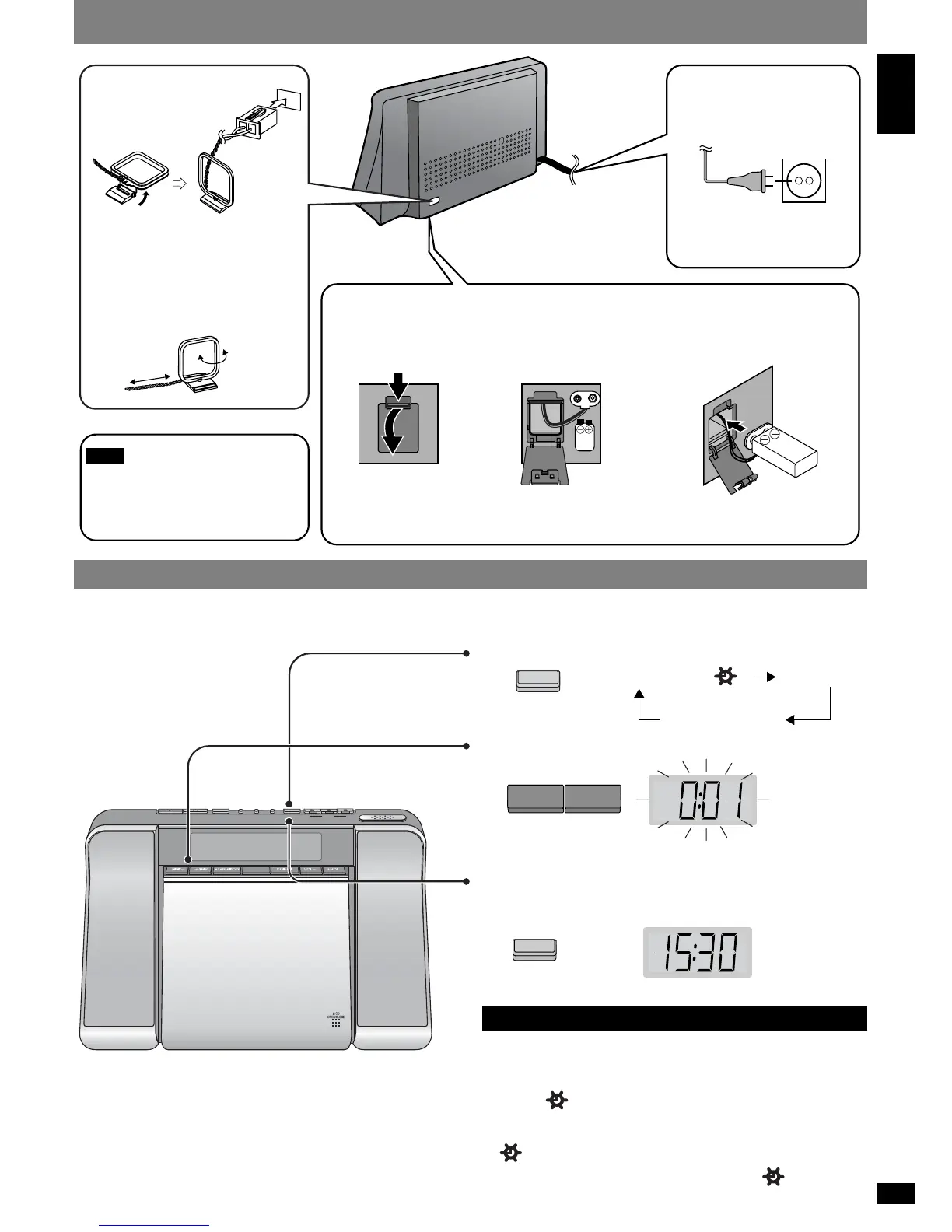 This is a 24-hour clock. This example shows how to set the clock for 15:30. Reset the clock regularly to maintain accuracy. (Monthly accuracy 4/3 30