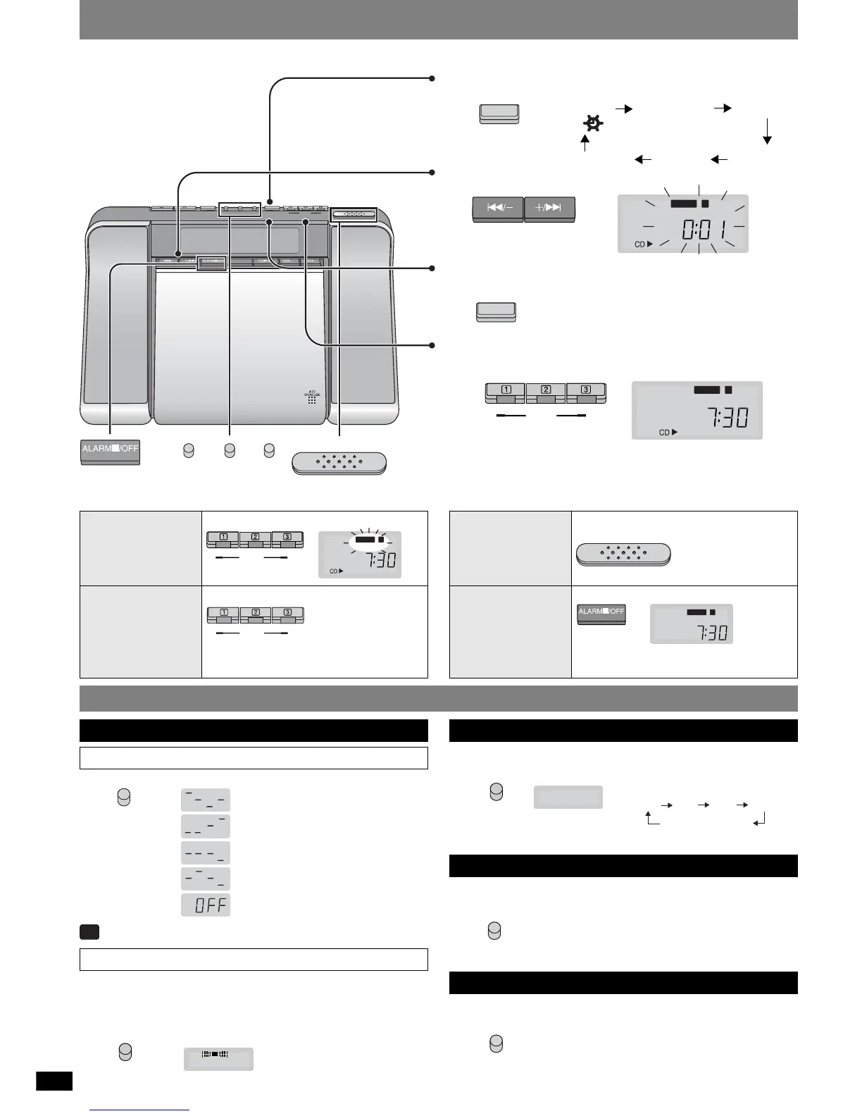 Prepare el aparato para que se encienda y reproduzca un CD o la radio con ALARM 1, o para que suene un zumbador con ALARM 2 y ALARM 3.