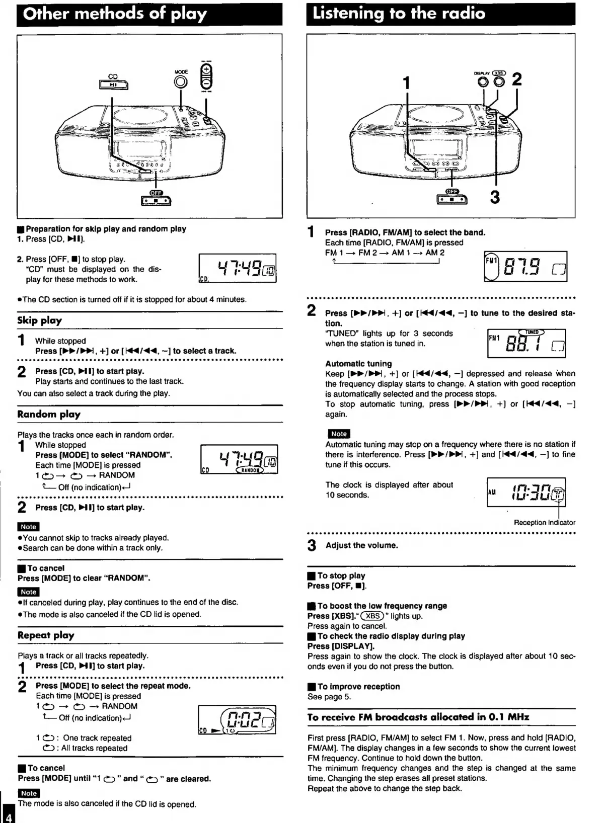 Panasonic RC-CD500 - Advanced CD Playback and Radio Operation; CD Playback Modes; Tuning and Listening to the Radio; Improving Radio Reception