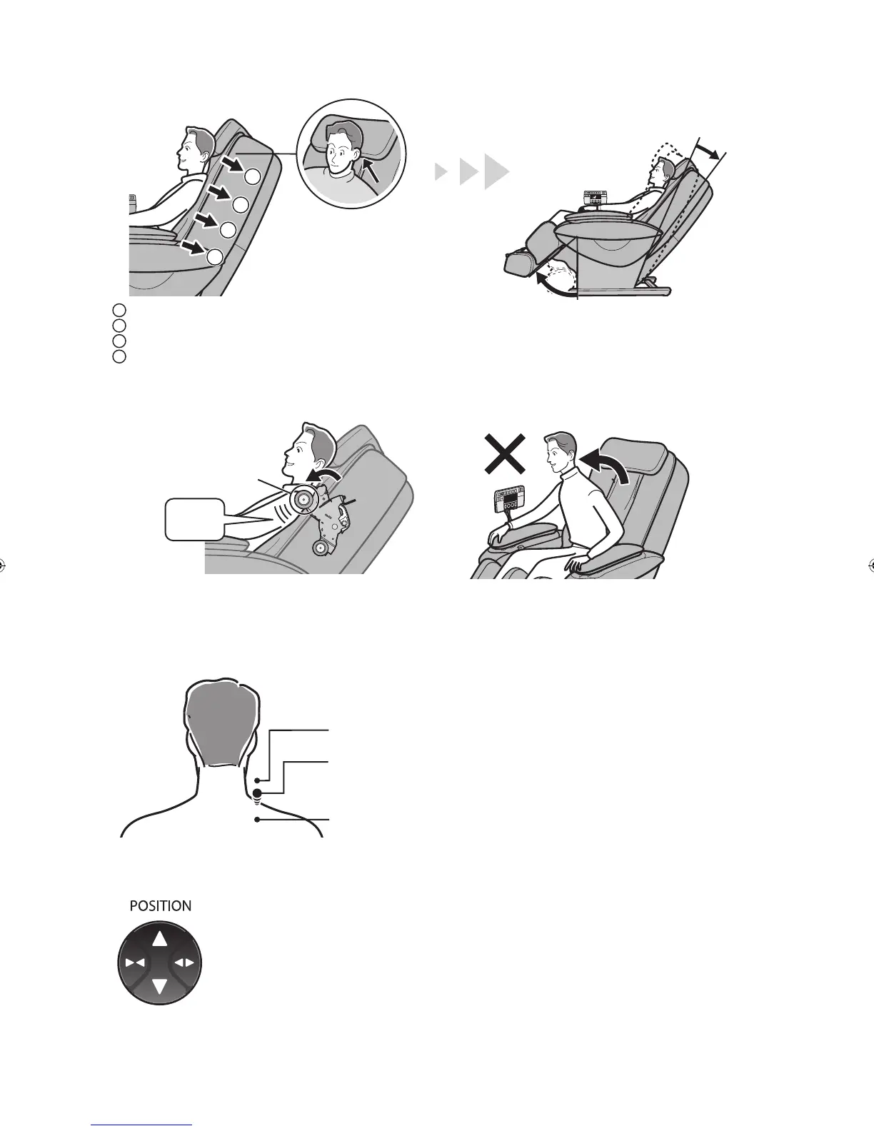 approximately 15 seconds), and use the POSITION button to move the massage heads up or down.