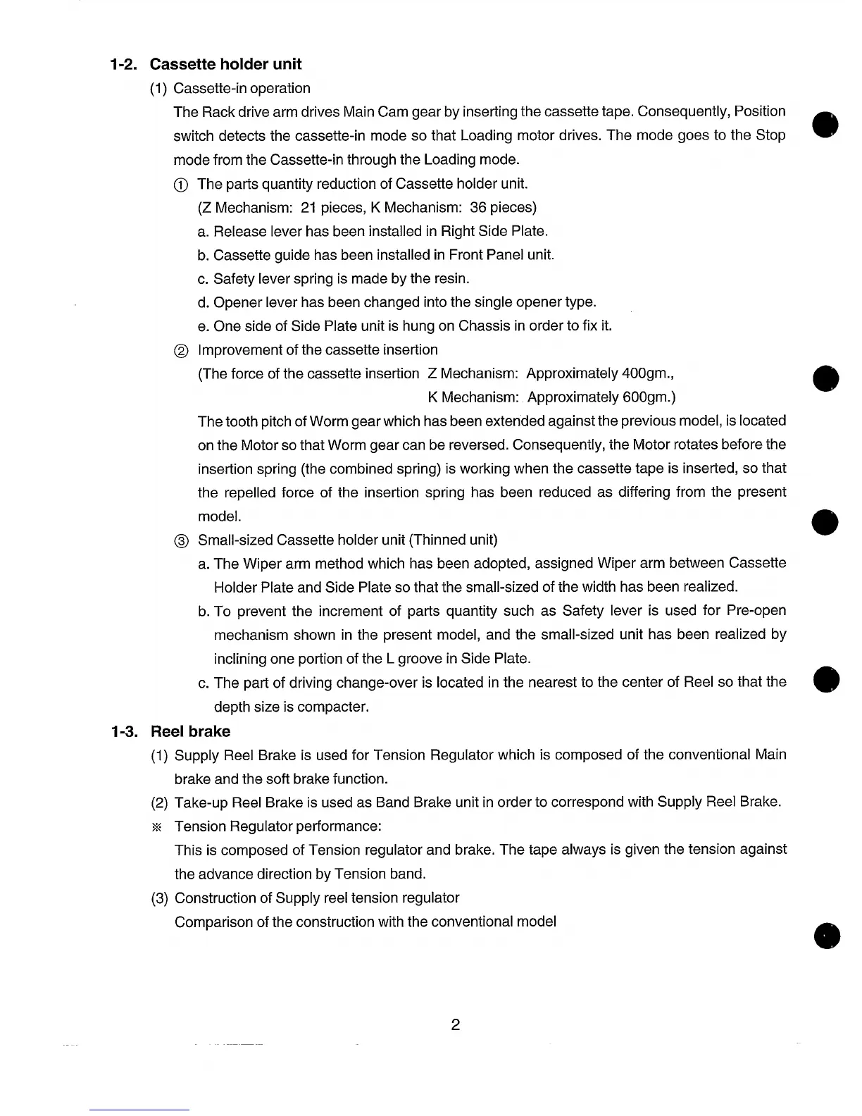 (The force of the cassette insertion Z Mechanism: Approximately 400gm.,